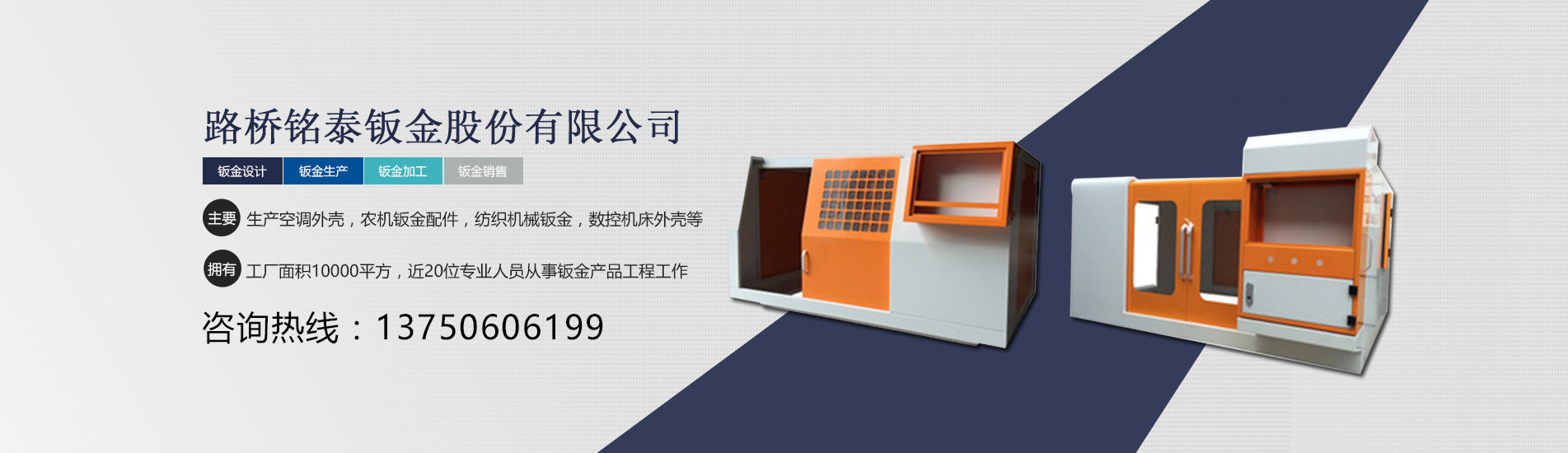 臺州市路橋銘泰鈑金股份有限公司是一家專業(yè)生產(chǎn)及加工,鈑金設(shè)計(jì),鈑金配件套生產(chǎn)。主要生產(chǎn)空調(diào)外殼,智能電控箱,農(nóng)機(jī)鈑金配件,紡織機(jī)械鈑金,螺桿式空壓機(jī)外殼,數(shù)控機(jī)床外殼,各種設(shè)備外殼等一系列鈑金產(chǎn)品。 公司擁有工廠面積10000平方,近20位專業(yè)人員從事鈑金產(chǎn)品工程工作,職工人數(shù)達(dá)150人。配備精良的開發(fā)與生產(chǎn)設(shè)備,現(xiàn)有主要生產(chǎn)設(shè)備:大型激光切管機(jī)(1臺),數(shù)控6000瓦光纖切割機(jī)(4臺),數(shù)控沖床(1臺),數(shù)控折彎機(jī)(20臺)大型液壓機(jī)(5臺),噴塑線(2臺),氬弧焊機(jī)(30臺),碰焊機(jī)(5臺)等。 公司宗旨:一直以來以客戶為主的方針,不斷改善提高,務(wù)求讓客戶獲得專業(yè)、具成本效益的方案。歡迎各界朋友蒞臨參觀、指導(dǎo)和業(yè)務(wù)洽談。